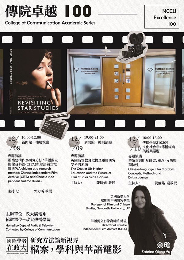 由政大廣電系主辦「研究方法論新視野」,將聚焦「檔案,學科與華語電影」
